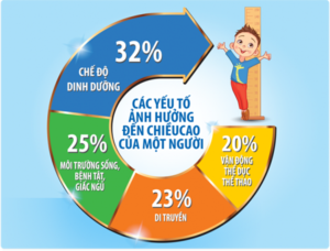 • Di truyền: Chiều cao của trẻ còn bị ảnh hưởng bởi yếu tố di truyền, vì vậy ngoài chế độ dinh dưỡng và luyện tập, chúng ta không thể thay đổi hoàn toàn chiều cao của trẻ.